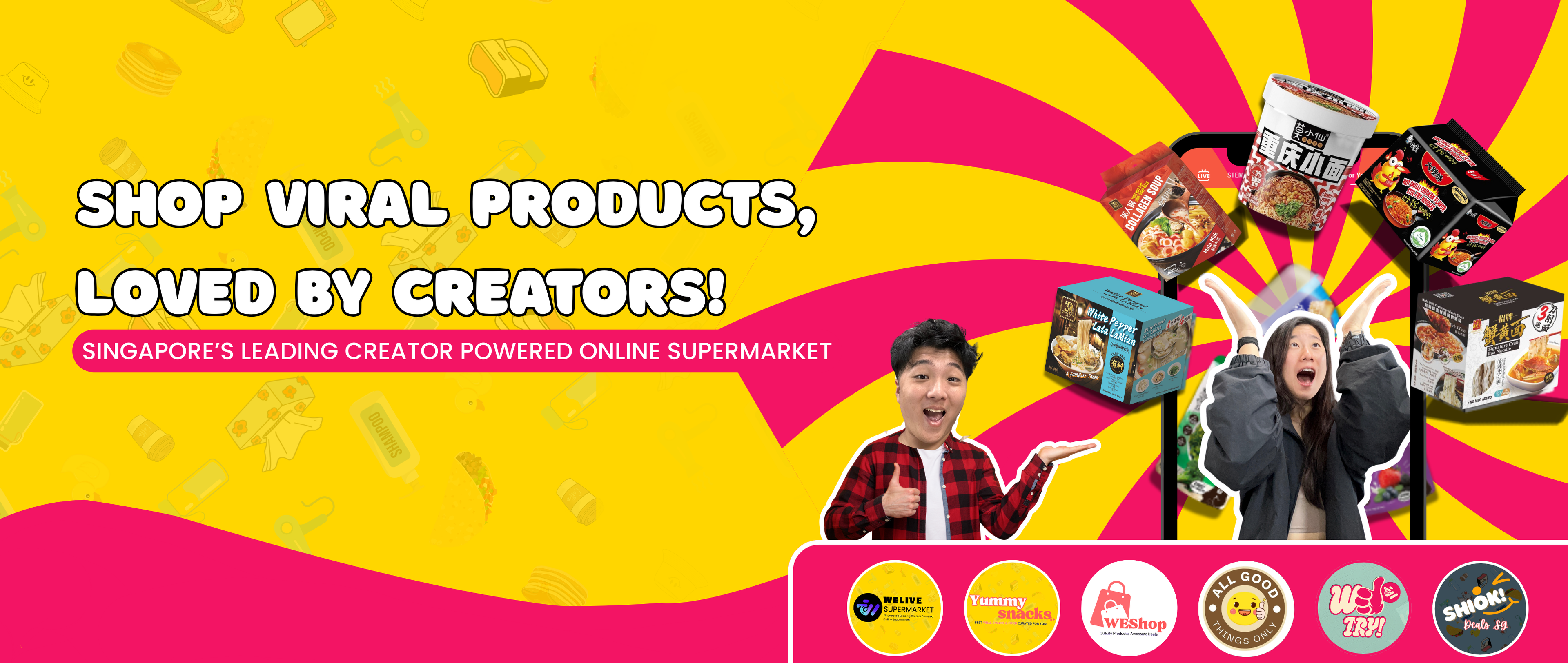 WELIVE Supermarket is a creator-powered online supermarket based in Singapore— where you can discover and shop viral snacks, instant food, and lifestyle products loved by real creators.